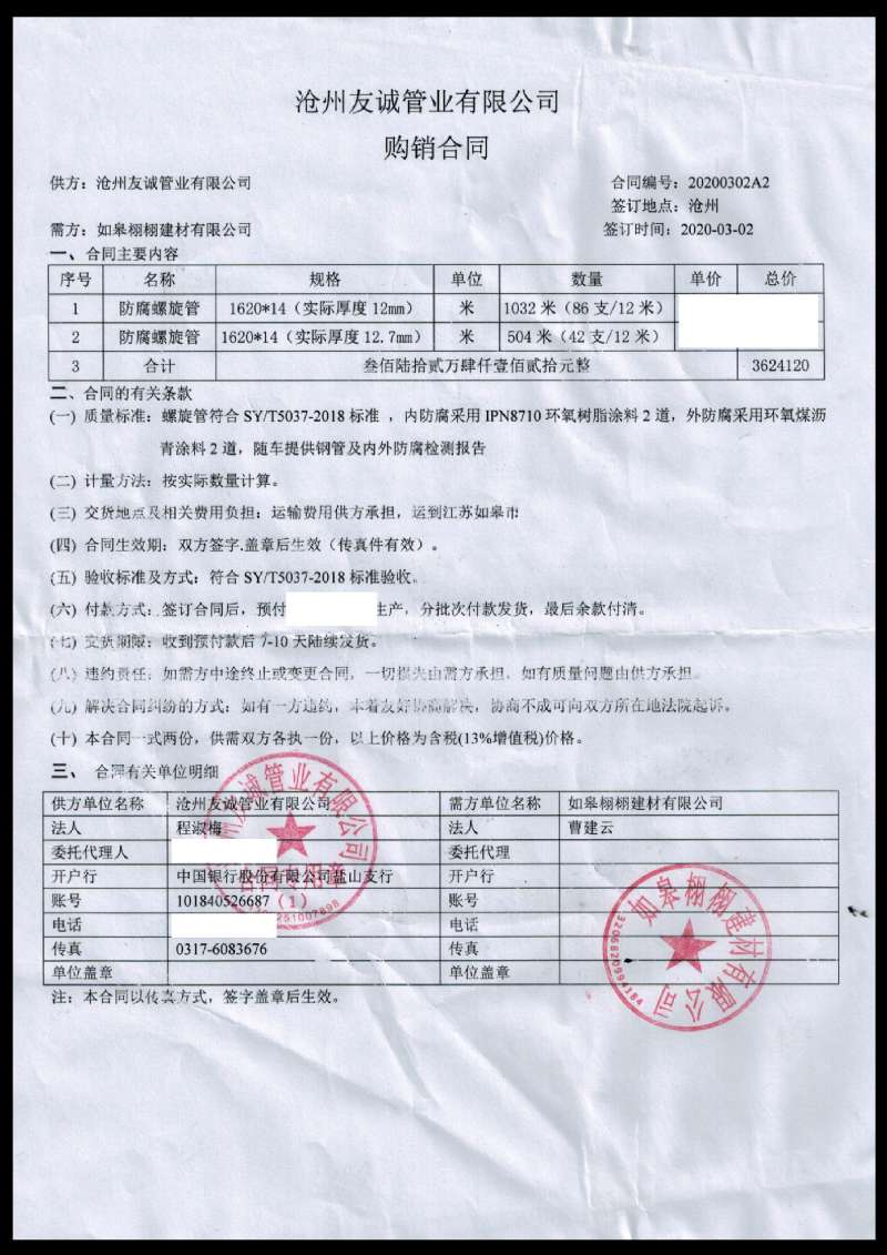 該項(xiàng)目位于江蘇省南通市。工程類型為引水區(qū)供水工程。該項(xiàng)目分為10個(gè)標(biāo)段。本工程采用螺旋管防腐,防腐類型為環(huán)氧煤焦油瀝青防腐。  內(nèi)防腐IPN8710環(huán)氧樹脂,外防腐環(huán)氧煤瀝青防腐  工程合同是分批簽訂的。第一批采購(gòu)管道總長(zhǎng)1536米,內(nèi)防腐用IPN8710環(huán)氧樹脂,外防腐用環(huán)氧煤焦油瀝青。